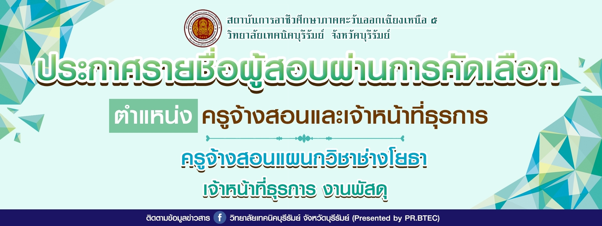 วิทยาลัยเทคนิคบุรีรัมย์ รับสมัครสอบคัดเลือกนักเรียน นักศึกษา เข้าศึกษาต่อ หลักสูตรประกาศนียบัตรวิชาชีพ (ปวช.) หลักสูตรประกาศนียบัตรวิชาชีพชั้นสูง (ปวส.) รอบทั่วไป ประจำปีการศึกษา 2565 ...