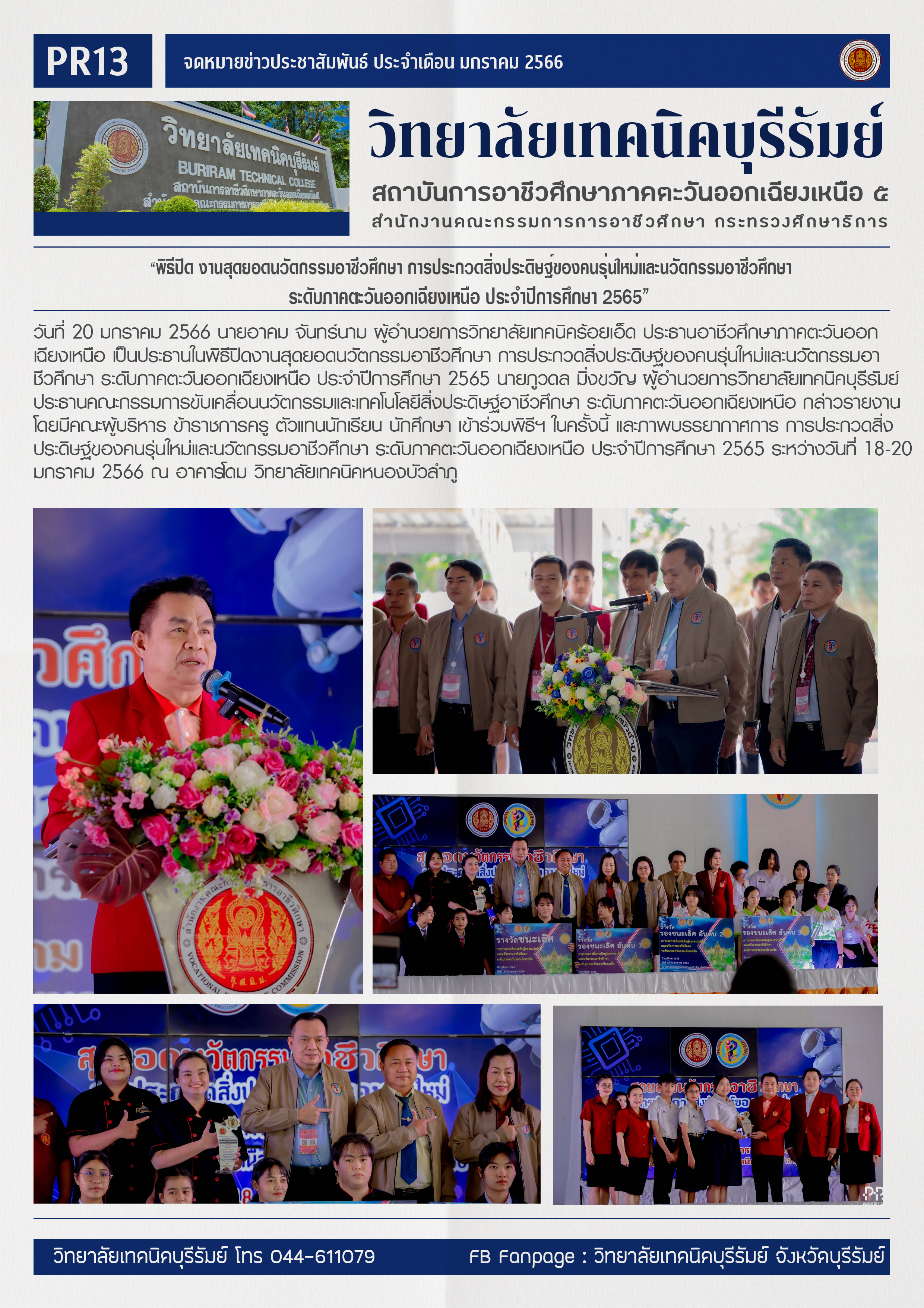 PR13 “พิธีปิด งานสุดยอดนวัตกรรมอาชีวศึกษา การประกวดสิ่งประดิษฐ์ของคนรุ่นใหม่และนวัตกรรมอาชีวศึกษา ระดับภาคตะวันออกเฉียงเหนือ ประจำปีการศึกษา 2565” "...