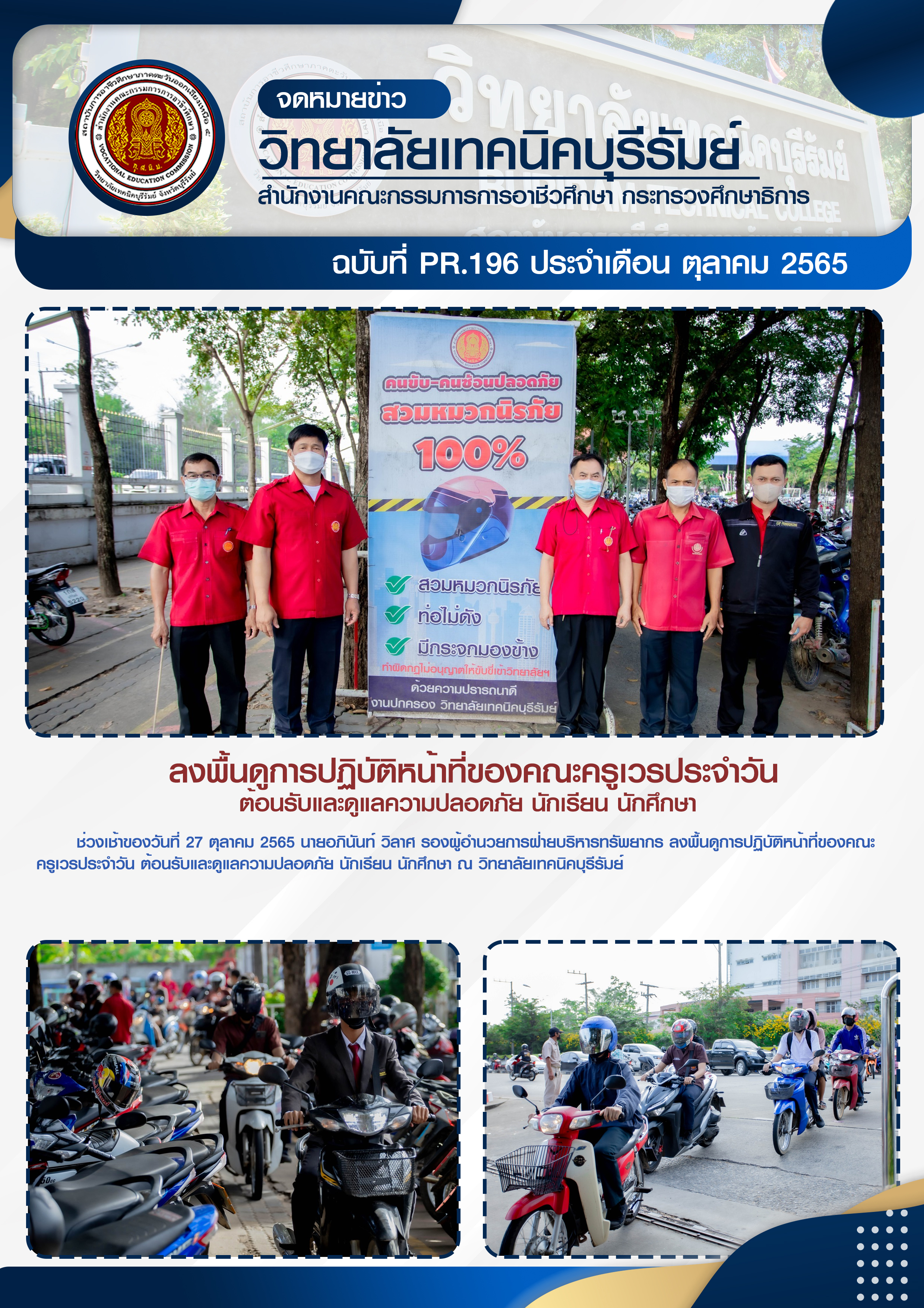 PR196 ลงพื้นดูการปฏิบัติหน้าที่ของคณะครูเวรประจำวัน ต้อนรับและดูแลความปลอดภัย นักเรียน นักศึกษา...